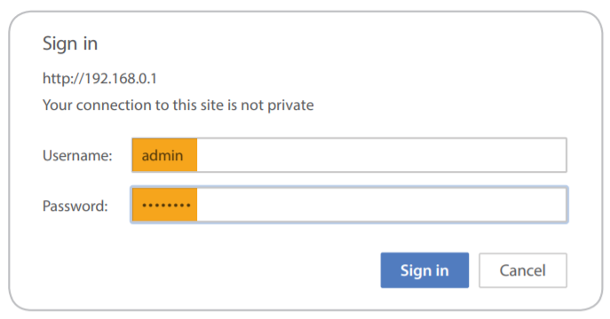 1. Ouvrez un navigateur Web et accédez à l’adresse suivante : 192.168.1.1/admin